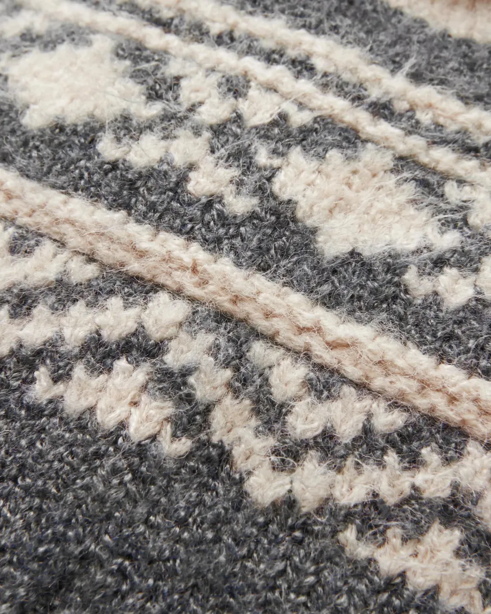 - Bobble hat with a turned up rib hem and jacquard pattern.