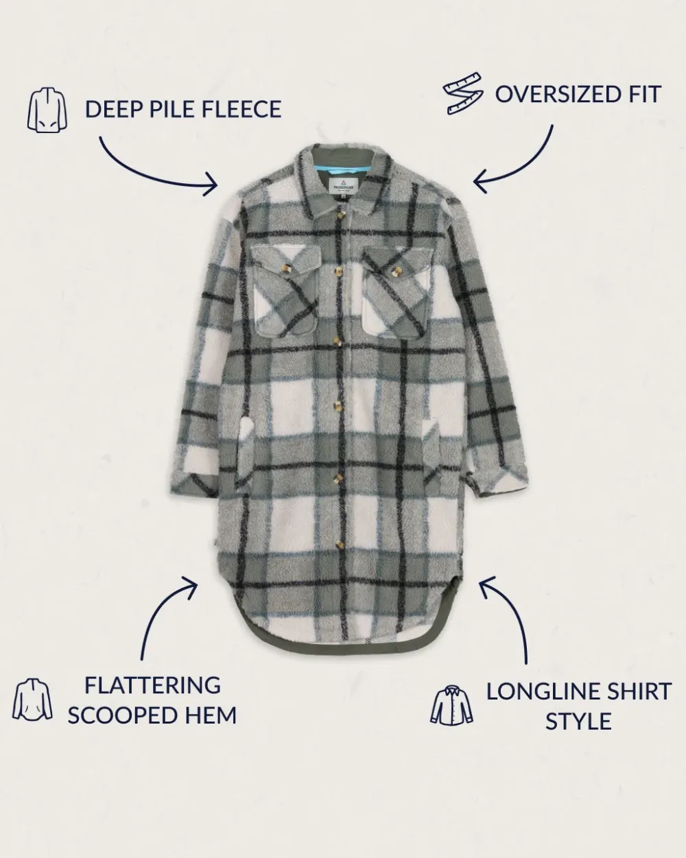 - Cosy Sherpa fleece long overshirt/jacket style.
