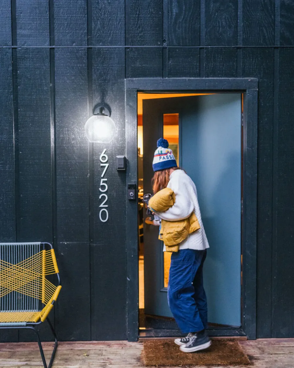 - Mid-weight soft recycled polyester cable knit.