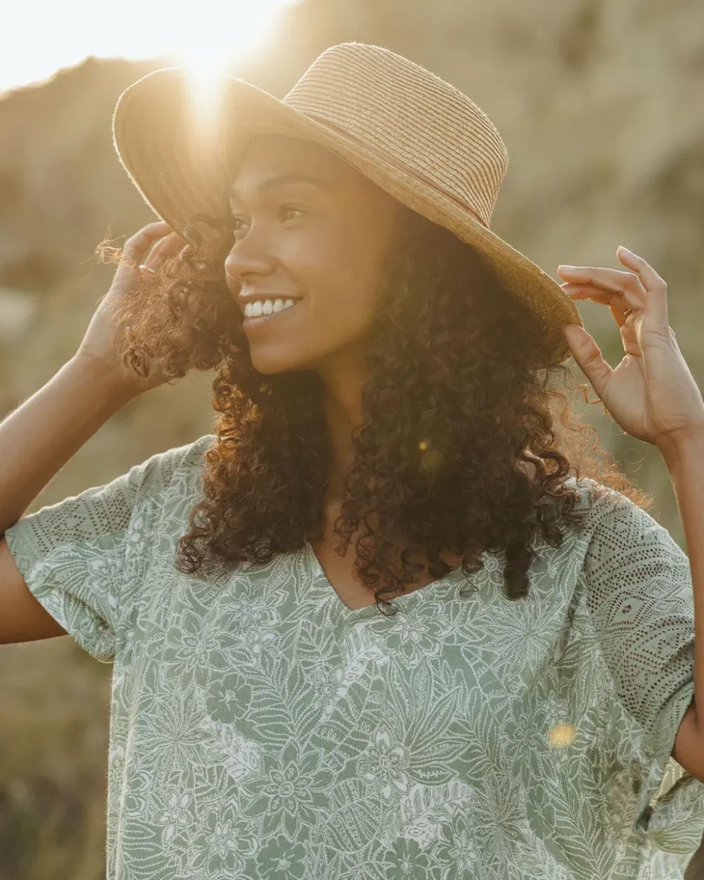 - Featuring crochet trim, side slits and side seam pockets and AOP design.