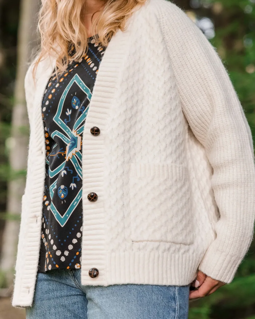 The Homey Cable Cardigan will carry you from dawn to dusk and everything in between. An easy wearing throw-on, great for evenings by the fire or wherever the road leads.