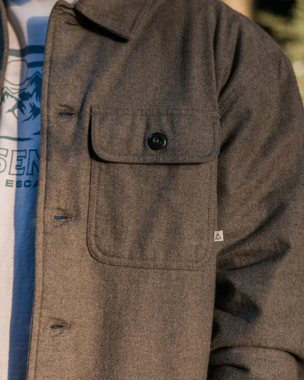 - Branded woven label on chest pocket.
