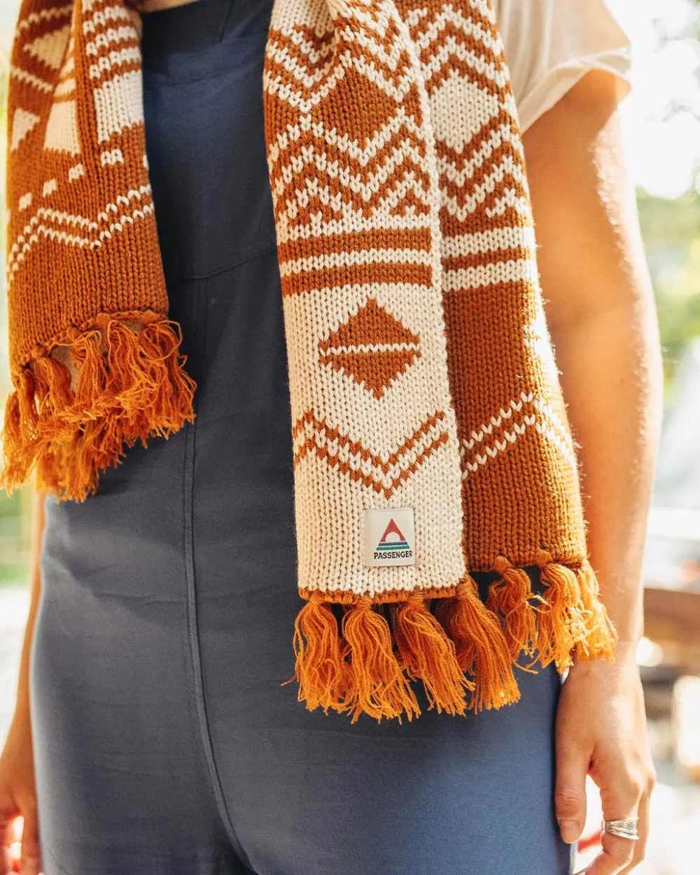 - Mid-weight jacquard knitted scarf.